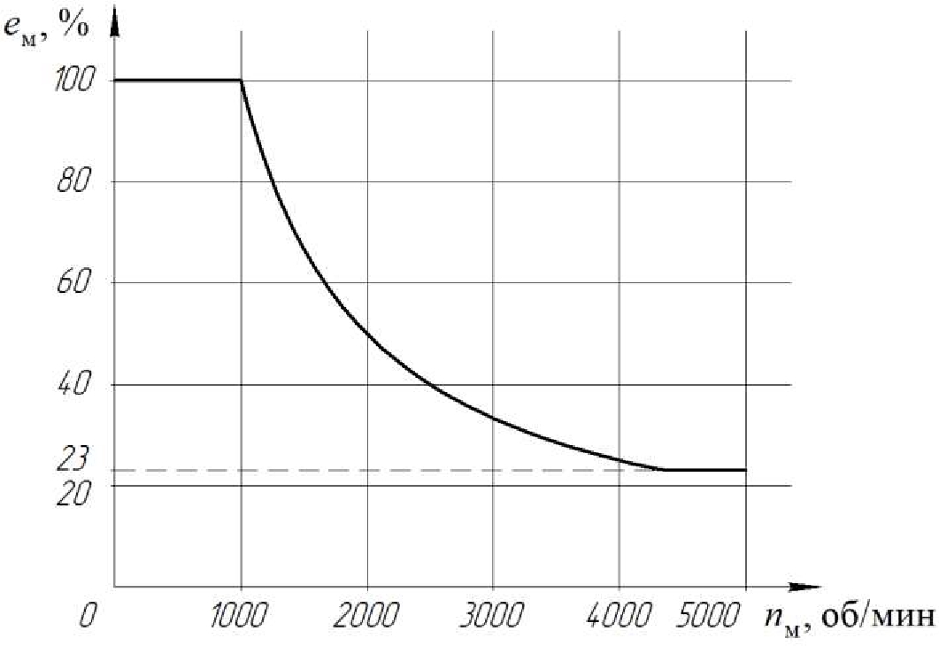 Рис. 6. Зависимость относительного рабочего объема гидромотора от частоты вращения вала гидромотора