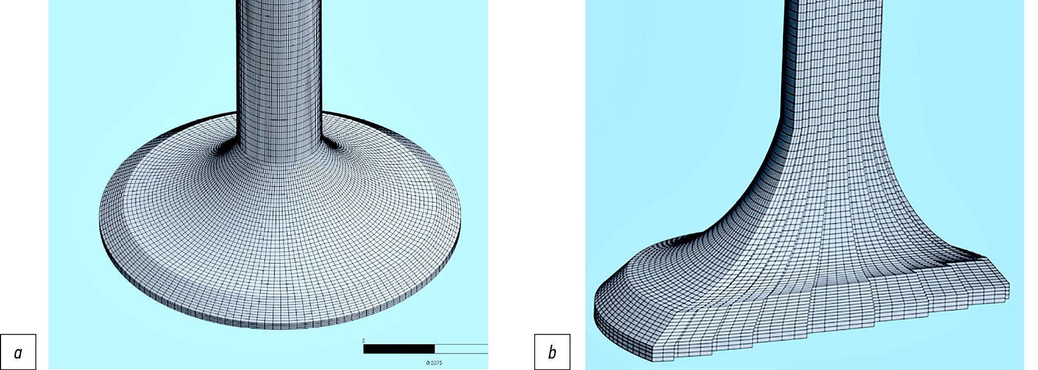 METHODS: To conduct the study, we used the finite element method implemented in the Ansys software, where a non-stationary thermomechanical calculation of valves with different designs made of homogeneous material was performed using the small-sized marine engine Ch8.5-11 valve with the subsequent analysis of the results, their study, and comparison.
