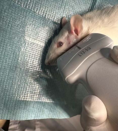 Рис. 4. Этап проведения ультразвукового исследования на лабораторном животном