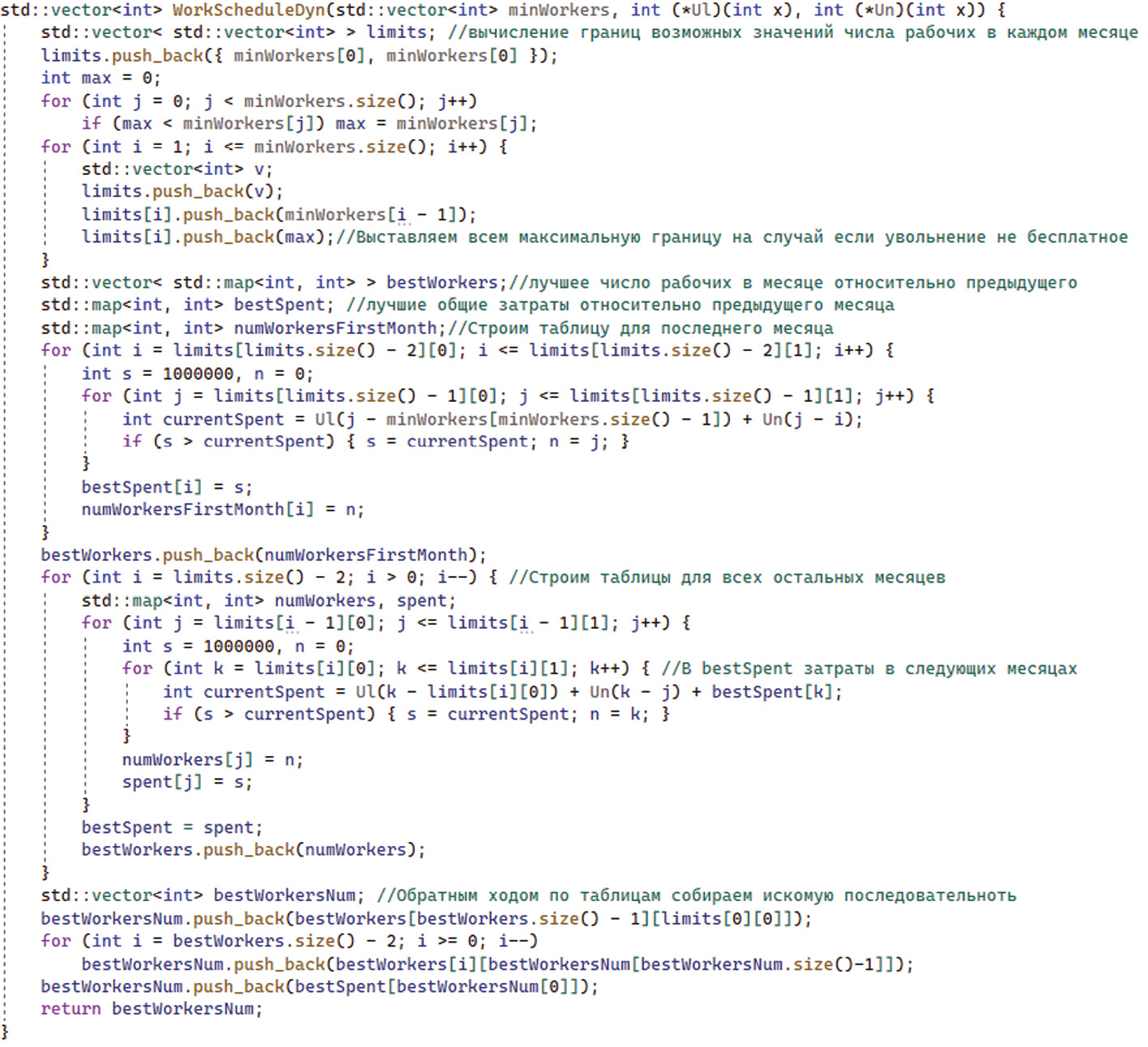 Рис. 1. Листинг алгоритма на основе метода ДП