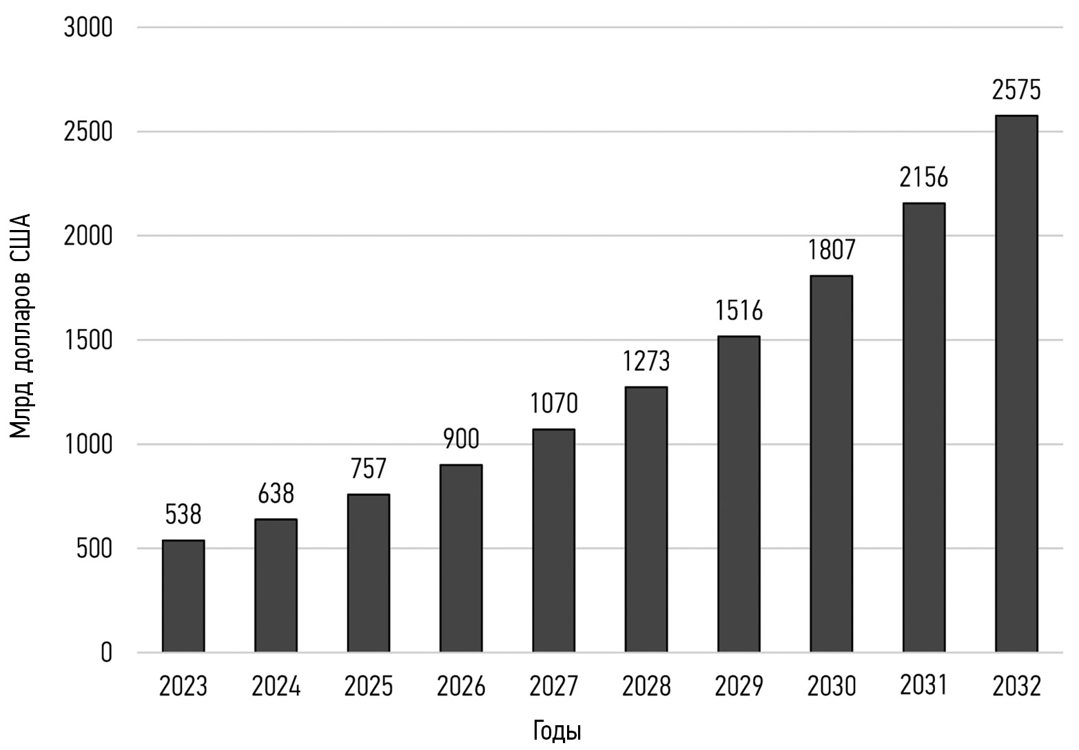 Рис. 1. Рост рынка искусственного интеллекта (2023–2032 гг.)