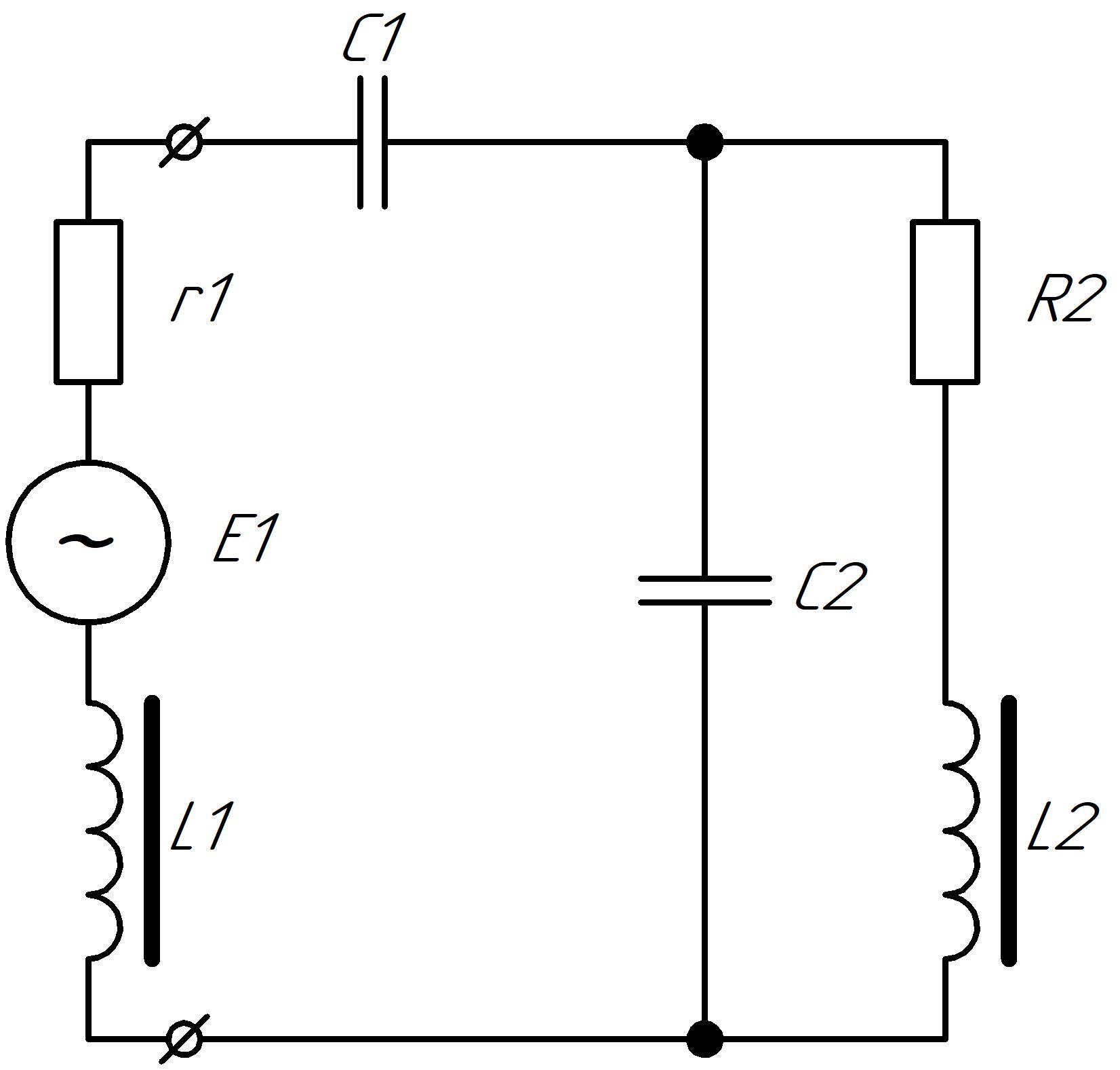 - Напряжение на нагрузке U2 измерено как напряжение на параллельно соединенных элементах C2 и R2-L2.