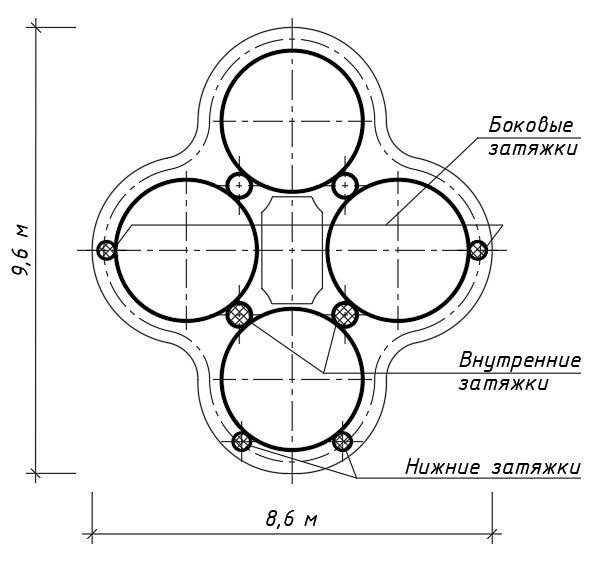 11 – опорные колонны здания ТПУ с лестницами и лифтами;