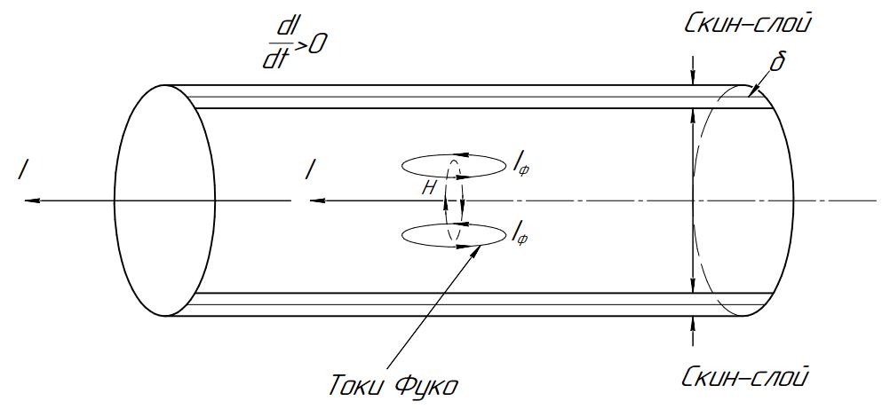 Рис. 2. Физическая картина возникновения скин-эффекта
