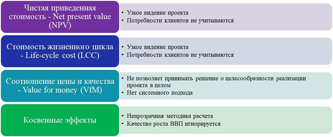 Рис. 4. Недостатки используемых методов оценки транспортных проектов