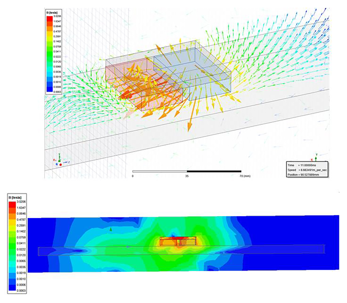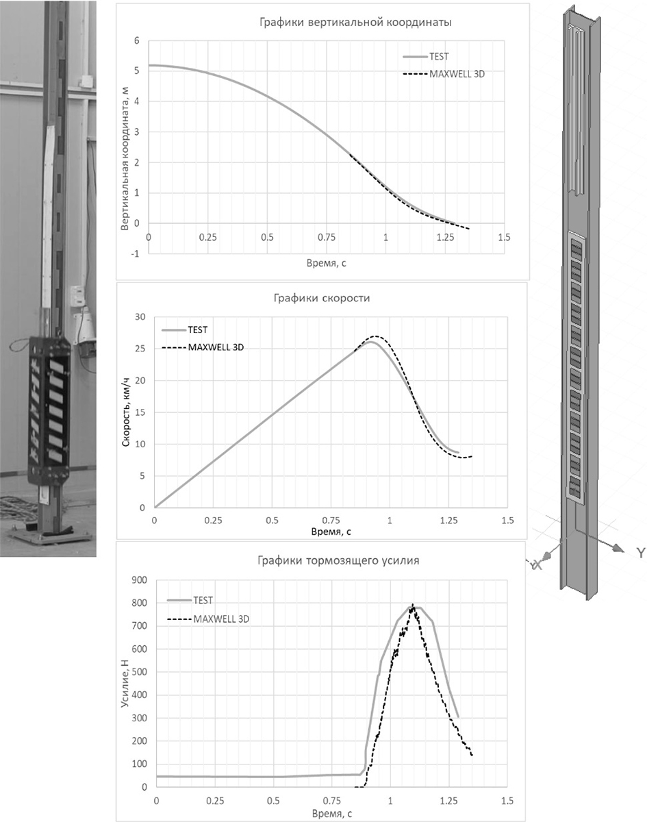 Было выполнено компьютерное моделирование опытных образцов секции ВТЗ с применением программного пакета конечно-элементного анализа ANSYS Maxwell. Проведена валидация компьютерного моделирования, погрешность по тормозящему усилию составила не более 3 %, что позволяет утверждать о хорошей достоверности получаемых результатов.