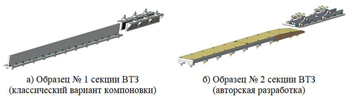 На основании полученных результатов были сконструированы два варианта компоновки опытных образцов секций ВТЗ, приведенные на Рис. 7: