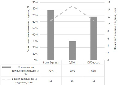 Рис. 3. Результаты исследования успешности и времени выполнения задания по компаниям