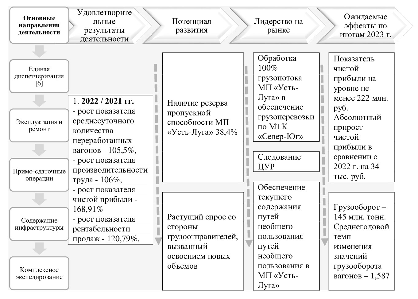 Высокий потенциал роста инвестиционного потенциала обоснован данными по темпам роста объемов грузооборота (2022/2021 гг.) стивидоров морского порта, что также свидетельствует об эффективности обеспечения экономической безопасности маневрового оператора, осуществляющего доставку грузов в МП «Усть-Луга».