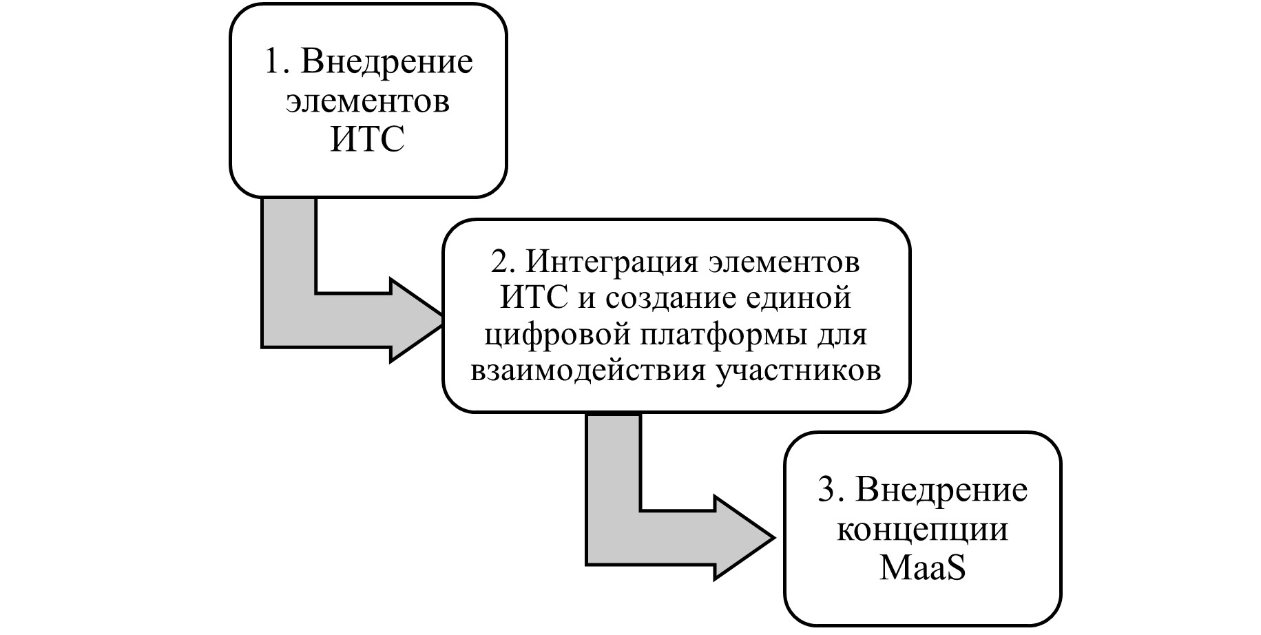 Концепция («Мобильность как услуга») целесообразна к внедрению после предварительной интеграции элементов ИТС и создания цифровых возможностей для планирования, маршрутизации и оплаты мультимодальных поездок.