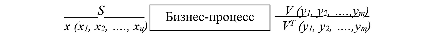Внешнюю сторону бизнес-процесса характеризует вектор частных абсолютных показателей функционирования V (y1, y2, ….,ym), каждый из которых определяется на m-мерном множестве абсолютных показателей RV, т.е. yi € RV, где i=1, m. Внутреннее состояние бизнес-процесса описываем на двух уровнях: на уровне структуры S и на уровне параметров X функционально-процессных элементов его структуры. Здесь главное: