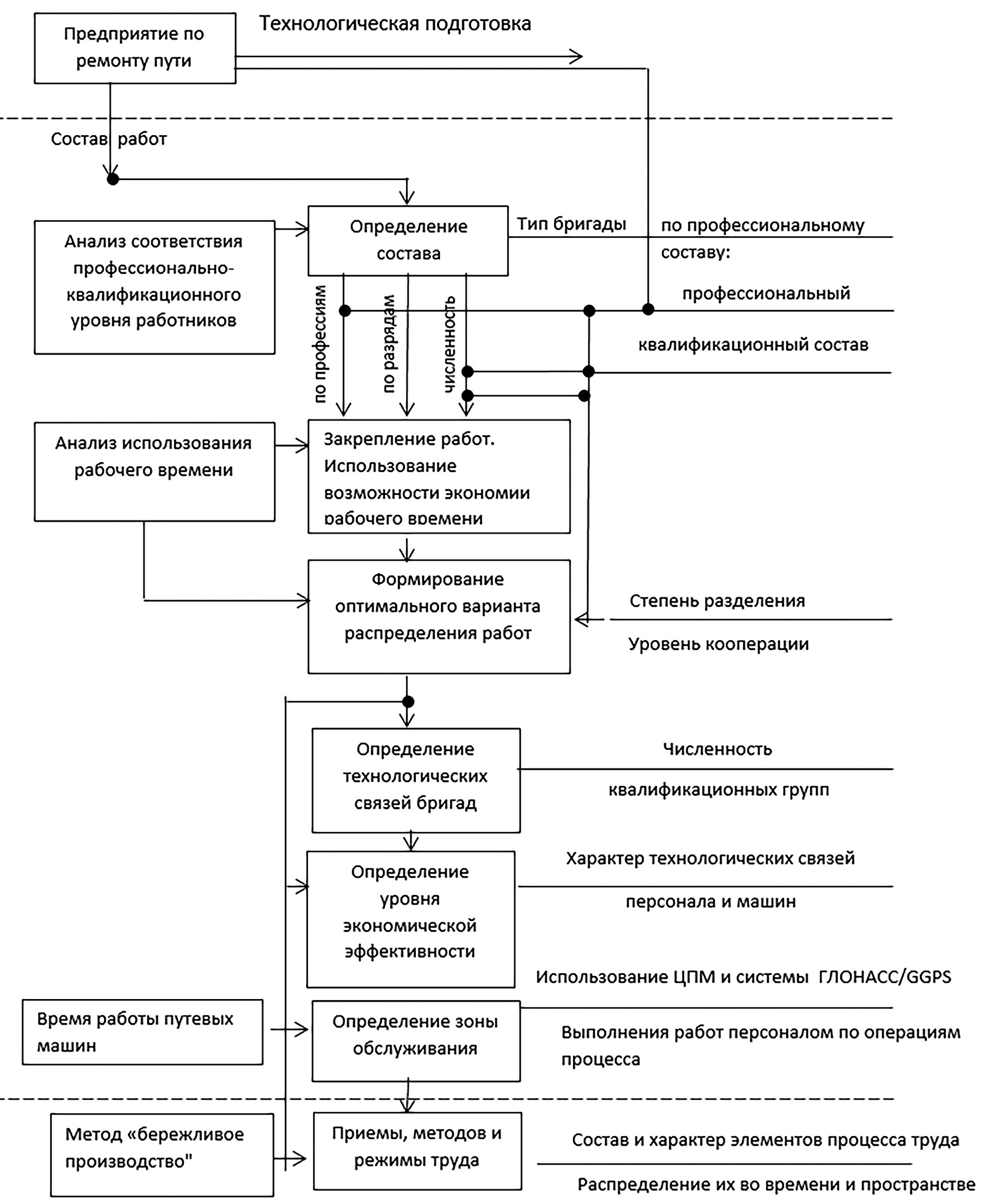 Fig. 5. Model of organizing a mechanized process of track overhaul