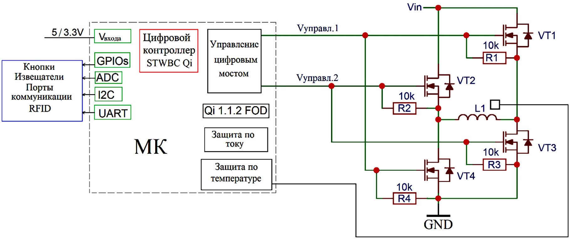 Рис. 4. Функциональная схема индукционной зарядки на примере STWBC Qi (составлено авторами)