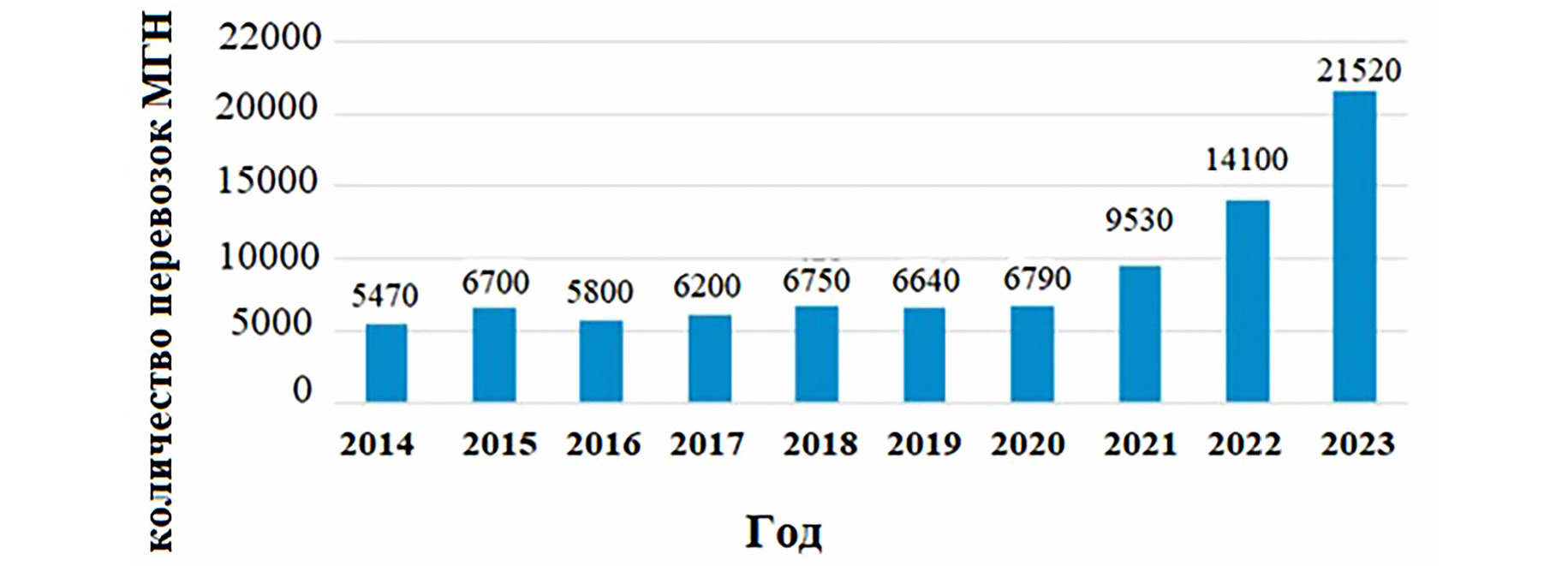 Рис. 2. Динамика количества перевозок МГН на железнодорожном транспорте в СЗФО в период с 2014 по 2023 год