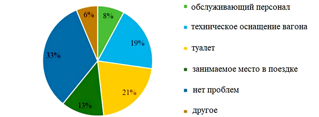 Еще один вопрос посвящался неудачному опыту анкетируемого во время поездок на поездах и основным неудобствам внутри вагона, среди которых значились такие варианты ответов, как: техническое оснащение вагона,