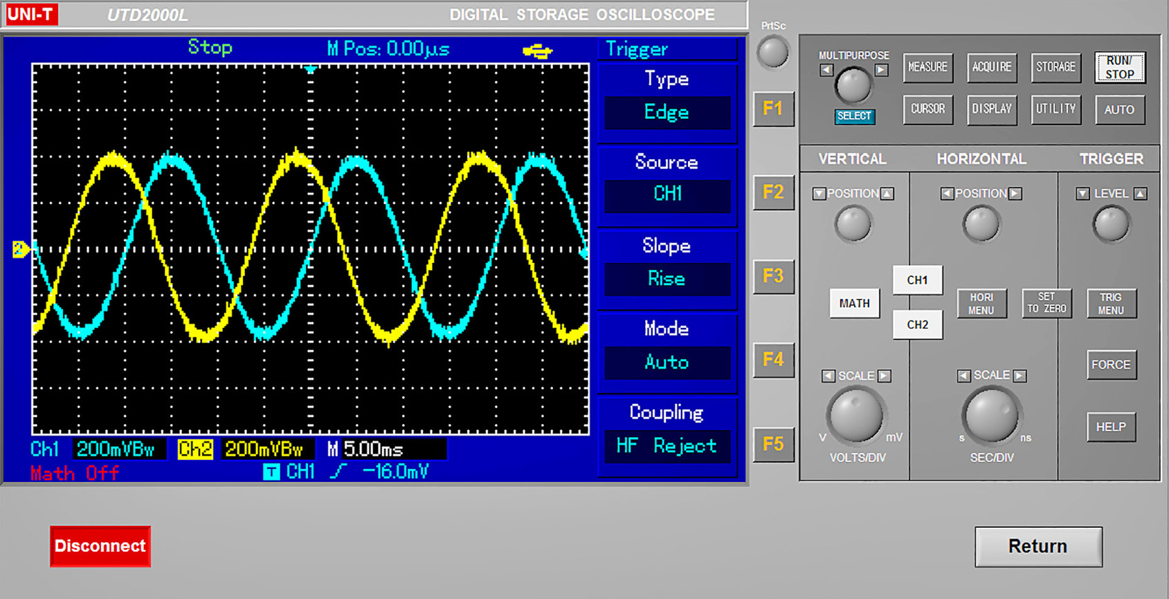 Рис. 3. Сигнал датчиков тока ДТ1, ДТ2 после фильтрации высокочастотных помех