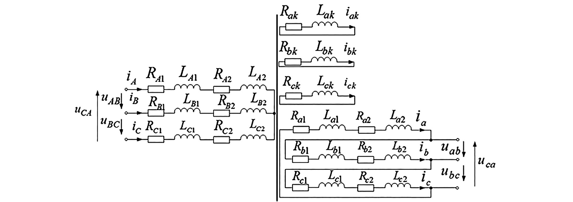 Fig. 2. Equivalent circuit diagram of a three-phase transformer with stabilizing properties
