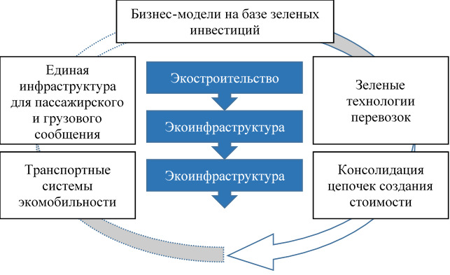 Проведенное исследование подтверждает, что Россия и транспортный сектор в частности достигли незначительных результатов при решении глобальных экологических проблем. При этом формат устойчивого развития железнодорожного транспорта на базе «зеленых» проектов является не только полезным в части защиты и восстановления окружающей среды, но и относительно прибыльным, поскольку предполагает наличие «зеленых» инвестиций частного бизнеса, что генерирует идею экологичного транспорта как финансово привлекательную. Фактически устойчивыми могут считаться любые инфраструктурные проекты, если они соответствуют принципам устойчивого развития. В более узком смысле – «зелеными» могут быть любые инициативы, которые удовлетворяют определенным экологическим требованиям. В мировой практике имеются факты, когда объекты инфраструктуры создавались с применением механизмов ГЧП и в дальнейшем были сертифицированы по «зеленым» стандартам.