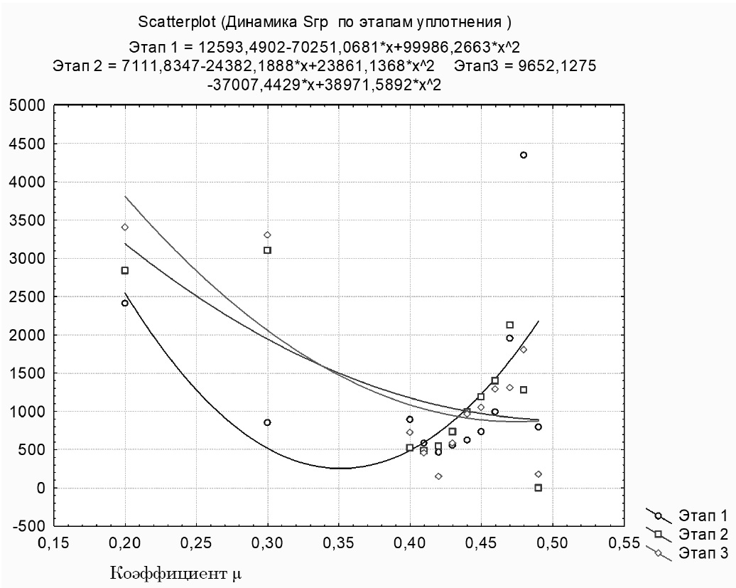 Статистический анализ позволил установить регрессионные зависимости и устойчивую тенденцию снижения коэффициента Пуассона на всех трех технологических этапах (Рис. 3, Табл.).