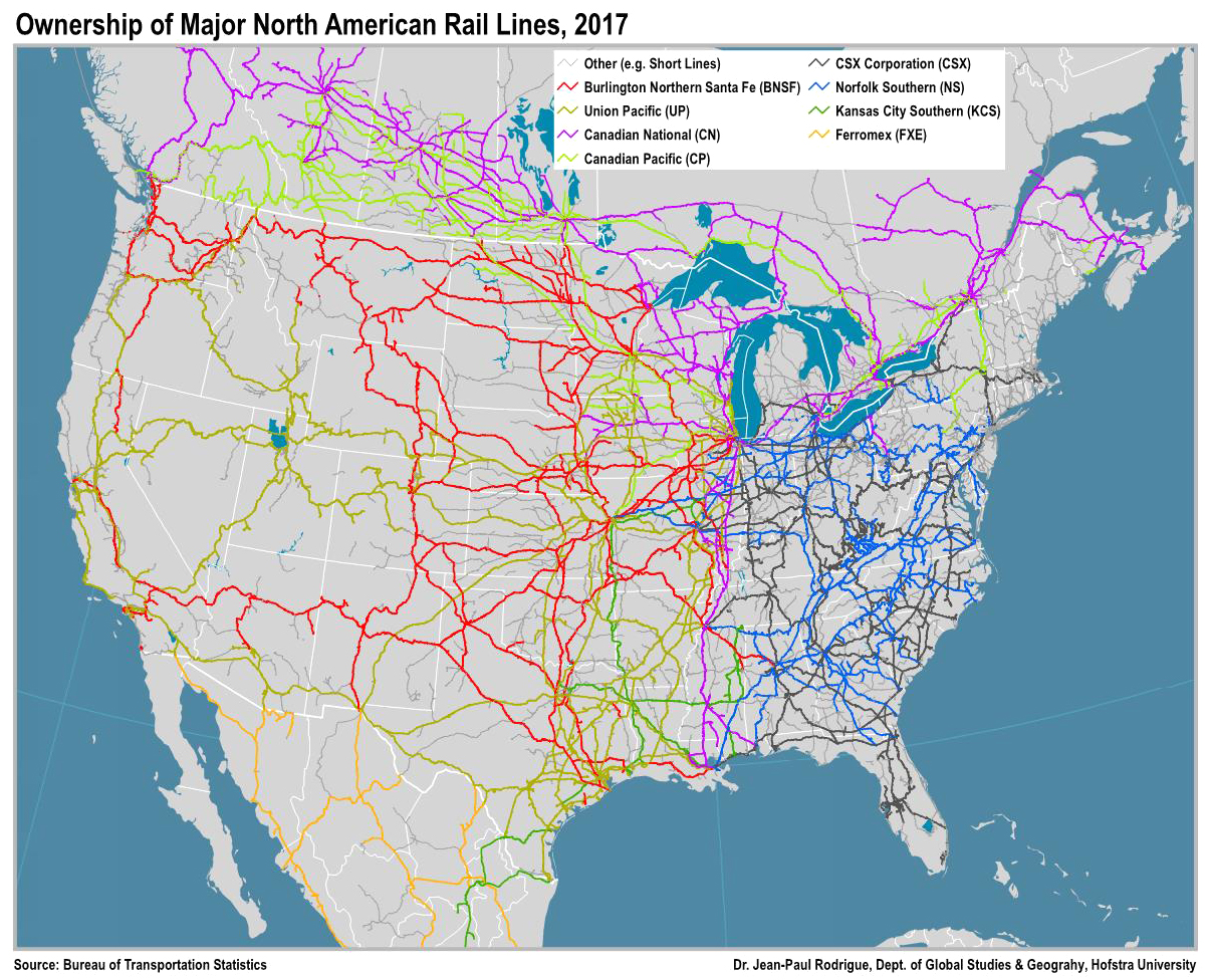 Fig. 1. Ownership of Major North American Rail Lines, 2017 [1]