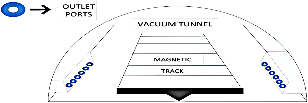 Fig. 2 shows detailed view of vacuum tunnel. Now we come to a vehicle which will levitate above the track and move with a very high speed.