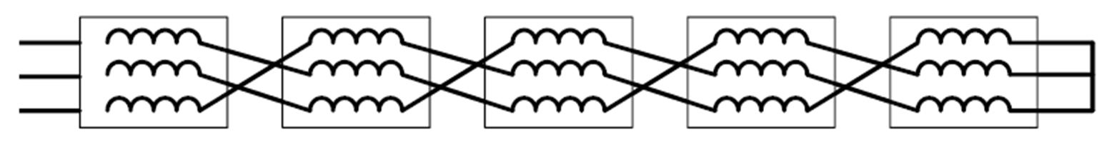 Рис. 7. Последовательное соединение обмоток индуктора ОЛАД с транспозицией (Чанша-маглев, Китай)