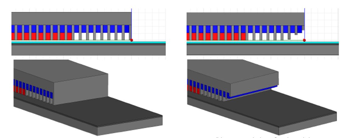 Рис. 8. Исходная конструкция сердечника индуктора (слева) и конструкция с увеличенным воздушным зазором под сбегающим краем индуктора (справа) [21]