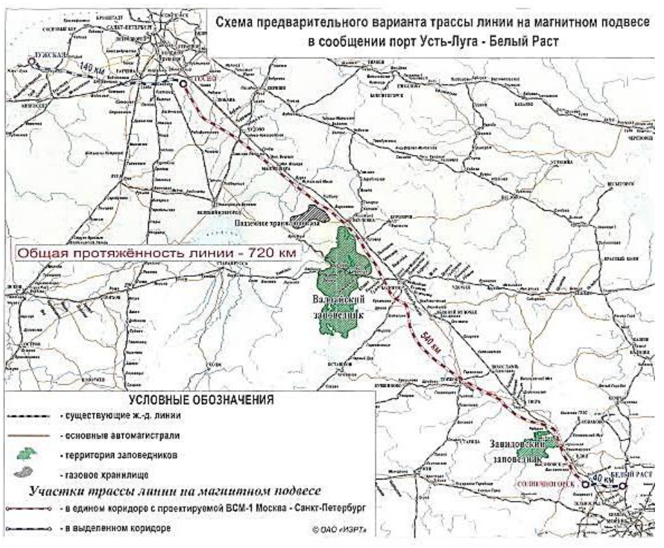 Магнитолевитационная трасса между Москвой и Санкт-Петербургом может стать головным участком транспортной системы «Север – Юг», «Запад – Восток».