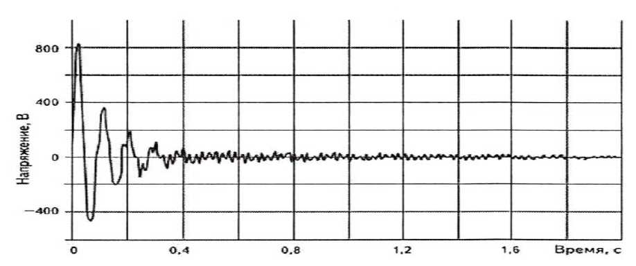 Рис. 1. Напряжение относительно «земли», наведенное в низковольтном контрольном кабеле в результате коммутационного процесса в цепи
