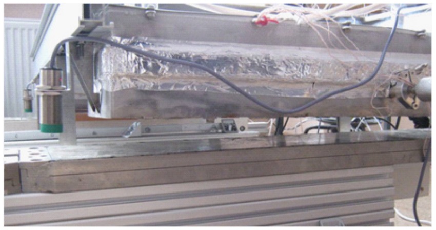 ВТСП-2 модуль во время испытаний представлен на рисунке 2. Результаты испытаний полностью подтвердили выводы численного моделирования. При начальном зазоре от 0 до 12 мм расчетная подъемная сила мала, что подтверждается малыми значениями вертикального перемещения. При этом наблюдается предсказанный быстрый переход от подъема к притяжению. При величине начального зазора от 22 до 34 мм подъемная сила нарастает и ВТСП-2 модуль переходит в режим электромагнитного с левитационным зазором 40–45мм.