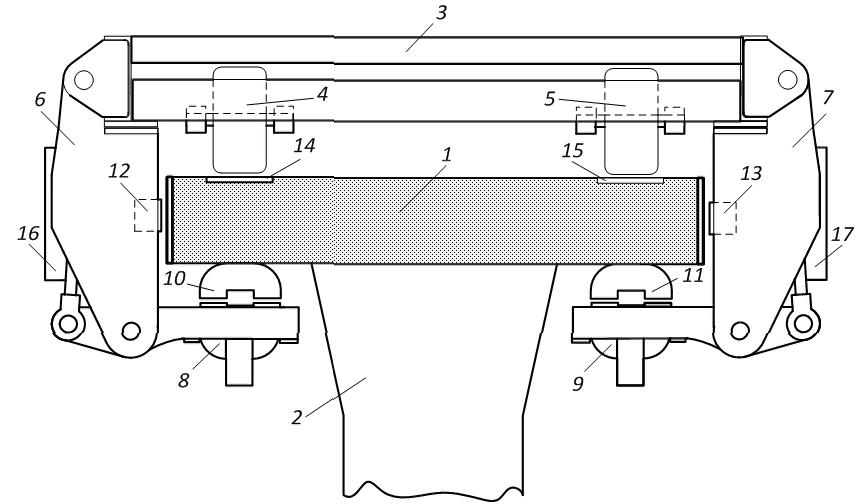 After the research, the construction concept of freight magnetic levitation transport system was proposed for operation in poorly developed areas. The proposed MLTS should have passive guideway structure of flyover type and coupled stock consisting of autonomous platforms for carrying containers. Each platform is equipped with easily-dismounted traction and levitation modules and electric and chemical energy accumulators. Power supply of the rolling stock may be carried out both from autonomous power plants and contact network. The fig. 8 shows cross-sectional view of the transport platform.