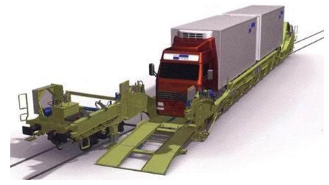 A more advanced technology “Modalohr” (France) differs from a conventional rolling highway by the possibility to use standard wheels, which removes the speed limitations and enables cutting operational costs. However, the wagons used in this technology are technically sophisticated and expensive.