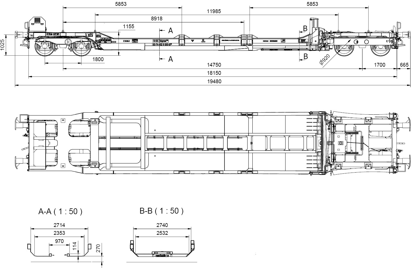 - low floor of the wagon that enables the transport units up to 4 m high to fit into the rolling stock loading gauge;