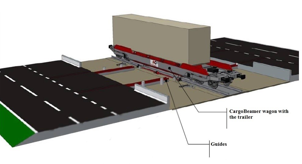 The essence of the technology “CargoBeamer” is that the trailer is placed on a specially designed pallet, which is electrically drawn on the platform along the special guides. In parallel, the arrived trailer is loaded on to the opposite side [11].