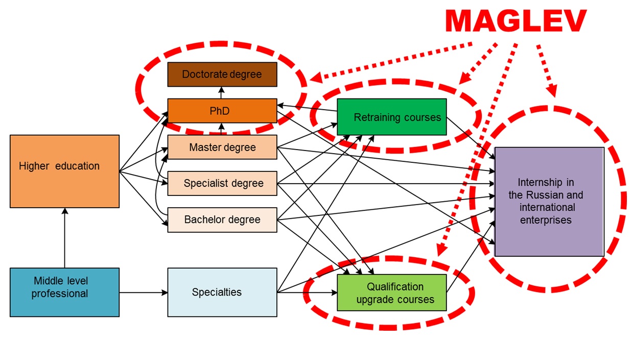 Introduction: The development of maglev technologies in Russia requires solving the task of training specialists and developing the design regulatory framework for the magnetic levitation transport systems (MLTS). The MLTS related specific issues, namely traction, levitation, lateral stabilisation, power supply systems as well as overall safety, should receive special attention.